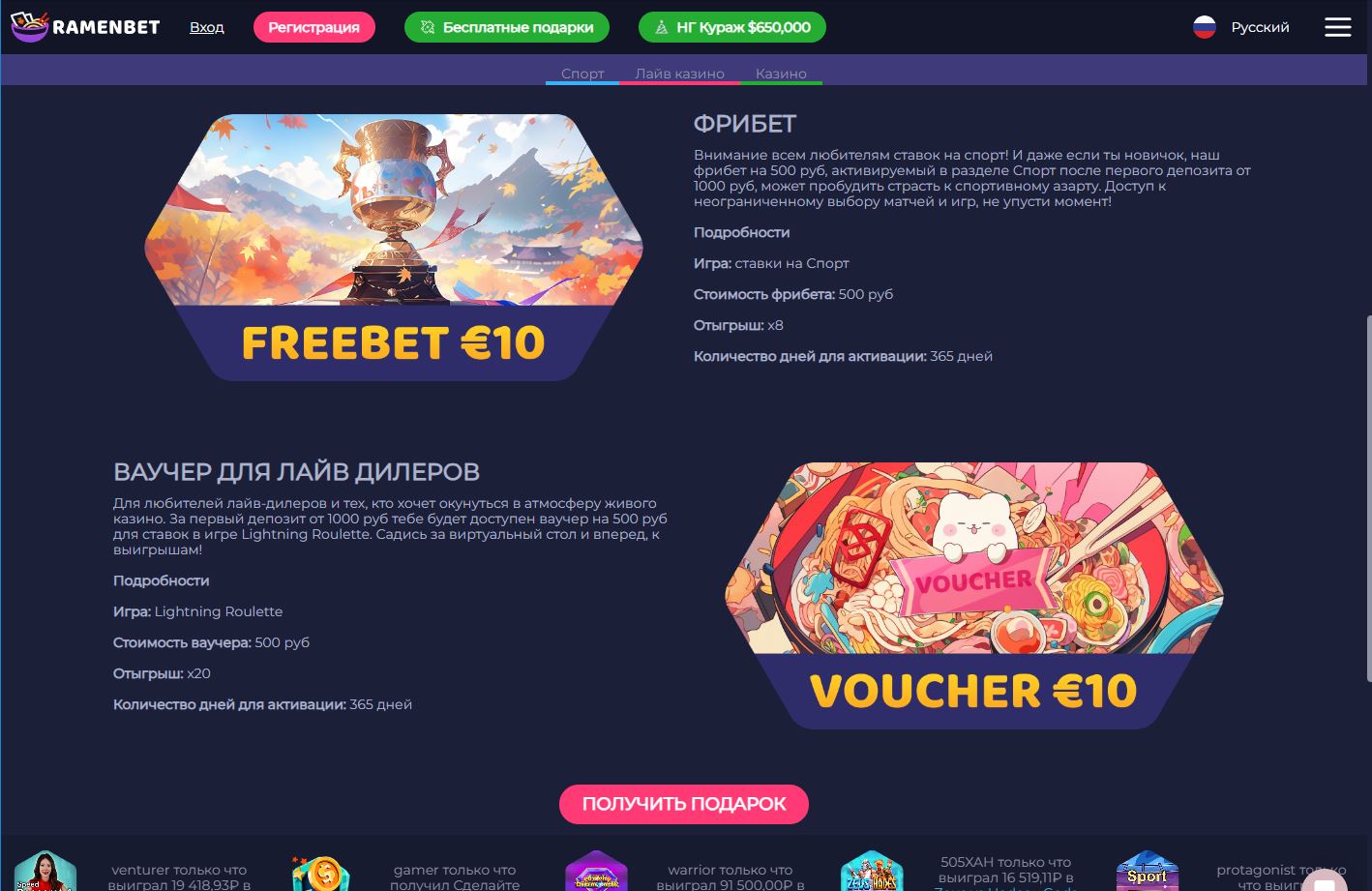 Ramenbet casino также предлагает своим игрокам множество бонусов и акций. На официальном сайте Раменбет вы сможете найти информацию о текущих акциях и бонусах, которые доступны для вас. Бонусы могут включать в себя дополнительные средства для игры, бесплатные спины на слотах, кэшбэк и многие другие приятные подарки. Регулярные игроки также имеют возможность стать участниками программы лояльности, которая предлагает дополнительные бонусы и привилегии.
